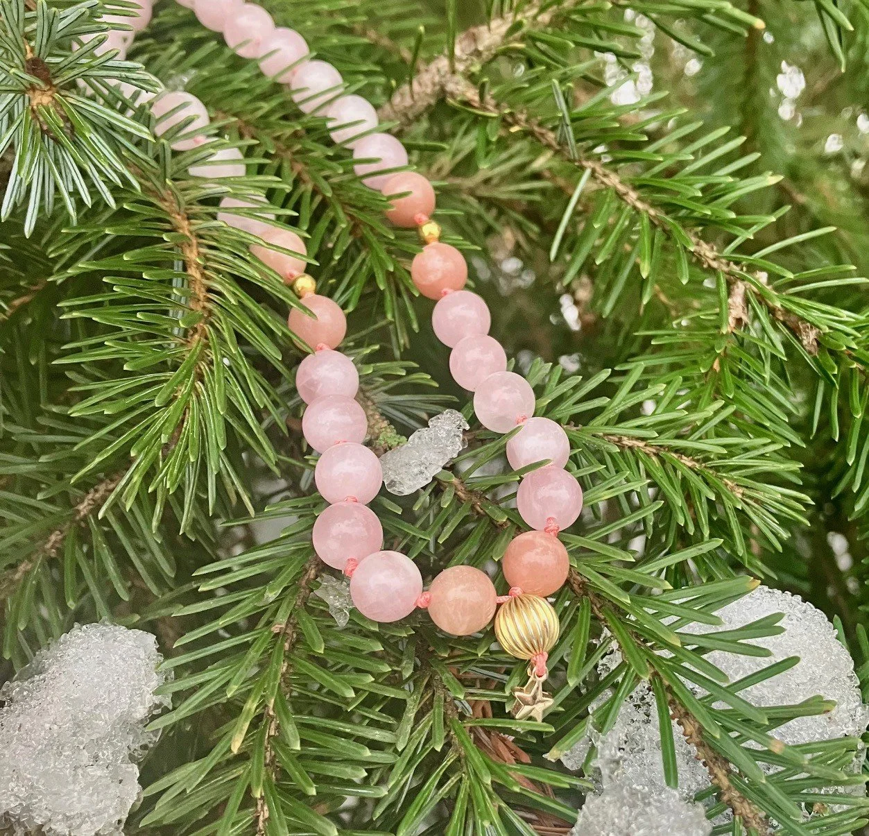 Denne mala består af krystallerne rosakvarts og solsten. Malaen er del af en nordisk kollektion og kommer med feminin styrke og dedikerethed til det, du ønsker. Malaen støtter dig i at være selvkærlig, stå stærkt i dig selv og lade dine drømme få lov til at blomstre og få liv.